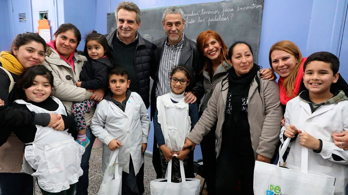 La visita de Rossi inició con una reunión con Ferraresi y la también diputada nacional Magdalena Sierra, para luego dirigirse a la escuela primaria N°8 de Wilde. Allí entregaron kits del programa municipal “De Punta en Blanco” que consta de un par de zapatillas, guardapolvo y mochilas.