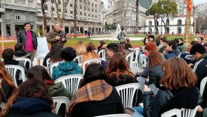 El paro de docentes universitarios continúa y este viernes realizaron una serie de clases públicas en Plaza de Mayo. La protesta fue impulsada por la Asociación Gremial Docente AGD-UBA. También contó con el apoyo de la Federación Universitaria de Buenos Aires (FUBA).