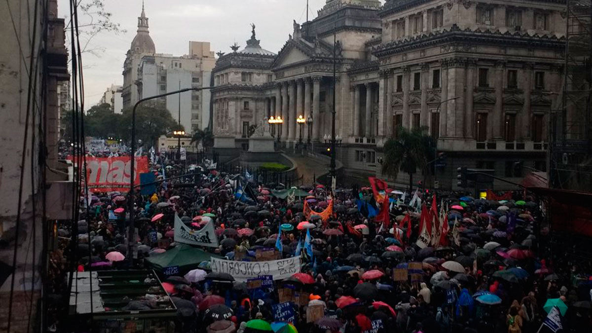 Docentes y estudiantes de las universidades públicas de todo el país se movilizaron este jueves desde el Congreso hasta Plaza de Mayo en defensa de la universidad pública. Pese a la intensa lluvia, la convocatoria fue masiva.