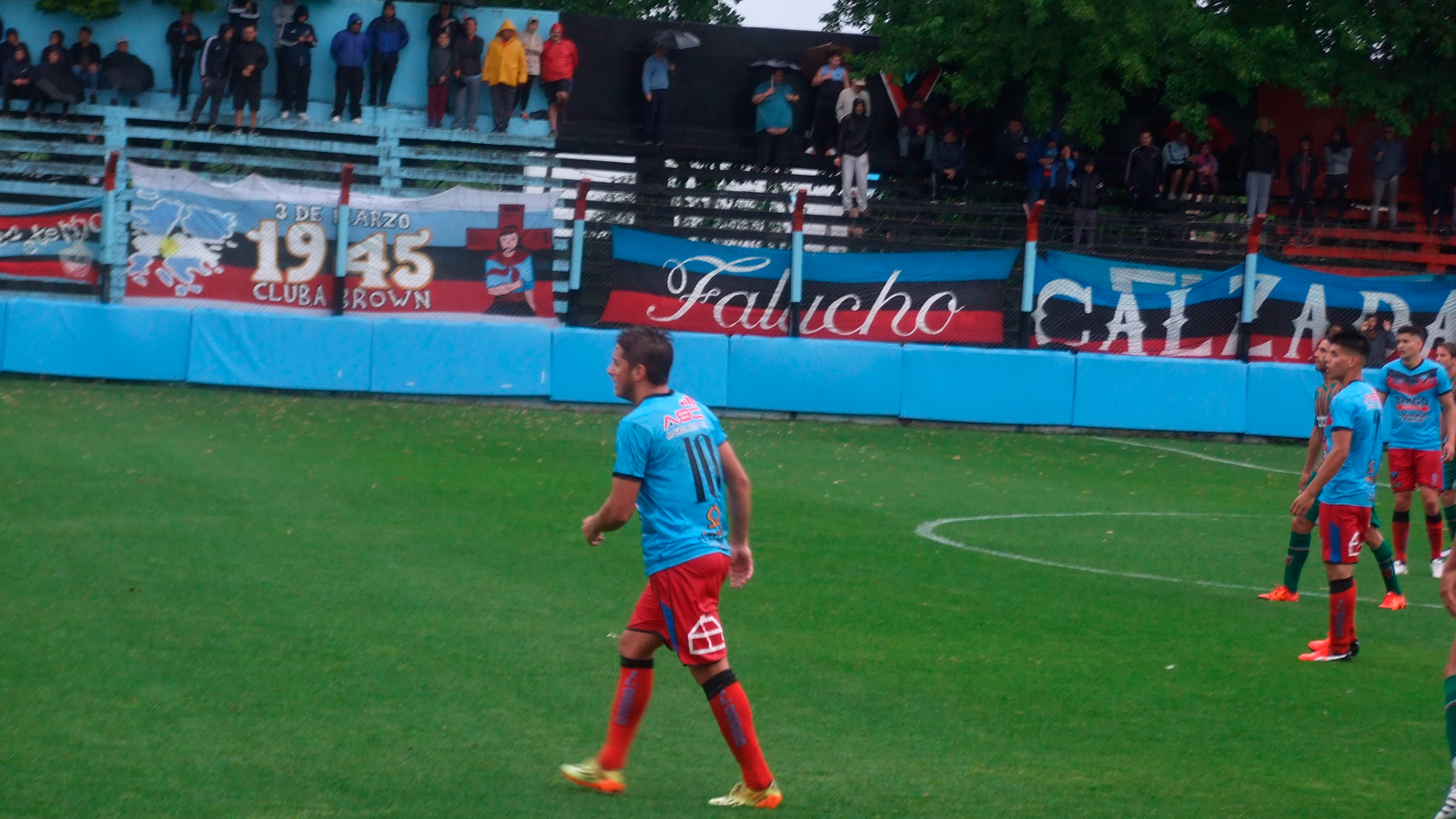 Brown de Adrogué disputaba su partido correspondiente a la fecha 10 del Nacional B, frente a Agropecuario en el Lorenzo Arandilla. Igualaba 0-0 cuando fue suspendido a los cinco minutos del segundo tiempo, por las intensas lluvias que castigan a la Región.