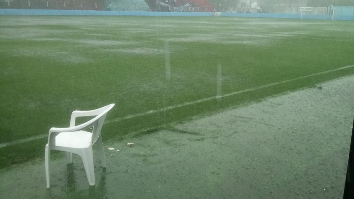 A los 4′ del segundo tiempo, la tormenta obligó a parar definitivamente el encuentro que #Brown y @Agropecuario_Of igualaban 0-0.