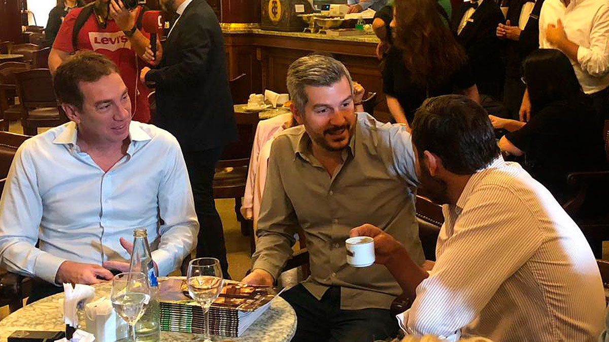 El jefe de Gabinete, Marcos Peña, brindó una conferencia de prensa en el habitual desayuno que realiza el oficialismo en el café Tortoni en la previa a cada elección, donde afirmó: “Hasta que se termine de contar el último de los votos, no hay que distraerse”.
