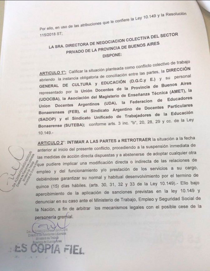 Luego de que los gremios docentes bonaerenses anunciaran un paro de 72 horas que comenzaría el lunes, el Ministerio de Trabajo dictó la conciliación obligatoria y, por ahora, las clases volverían el lunes tras el receso invernal.