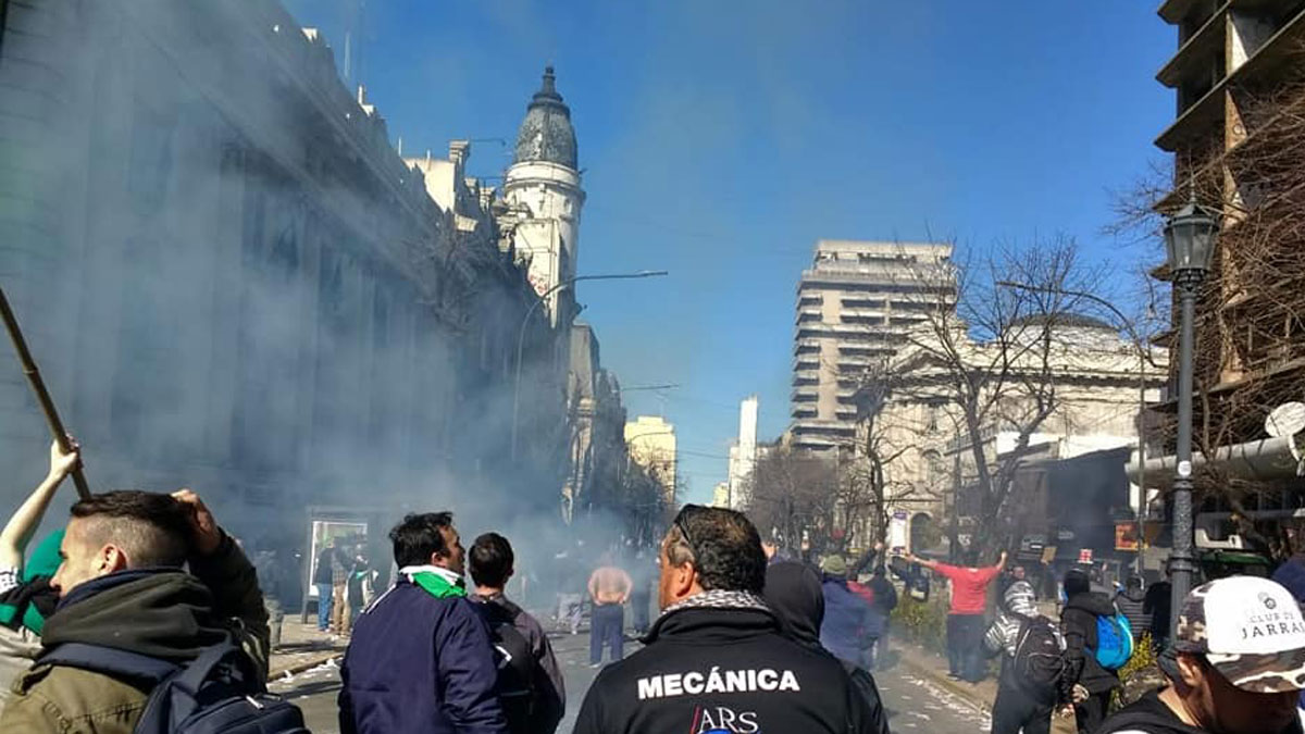 Desde ATE bonaerense calificaron como “brutal” la represión que sufrieron los trabajadores cuando “efectuaban un legítimo reclamo en defensa de la soberanía naval”. Un nutrido operativo de seguridad sorprendió a los trabajadores cuando se acercaban a la Gobernación. Hugo “Cachorro” Godoy alertó: “No estaban esperando”, y precisó que hay tres heridos.