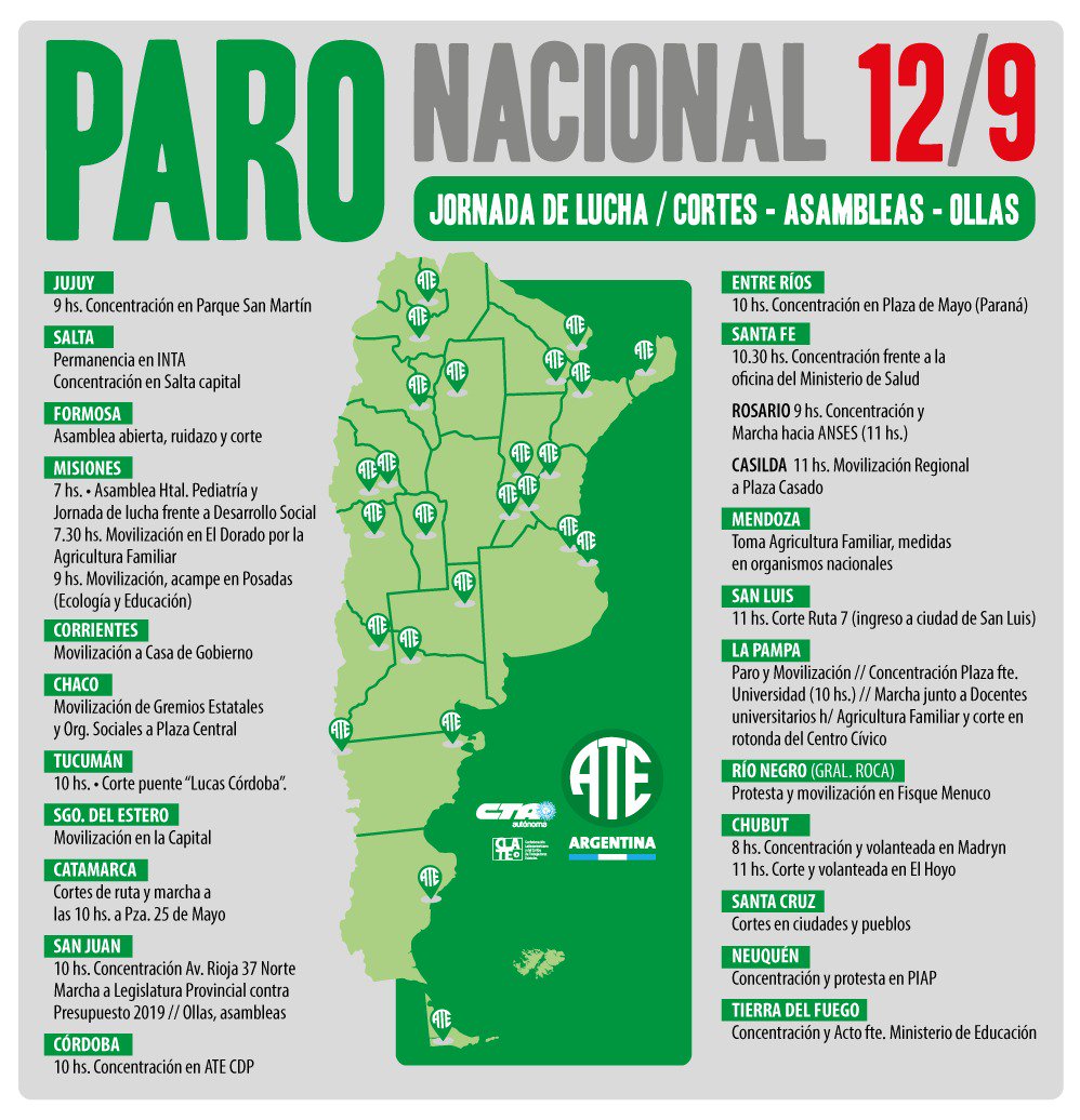 La medida de fuerza será acompañada por movilizaciones en todo el país. Organizaciones como la CCC, Barrios de Pie, la CTEP, el FOL y el Frente Darío Santillán realizarán ollas populares.
