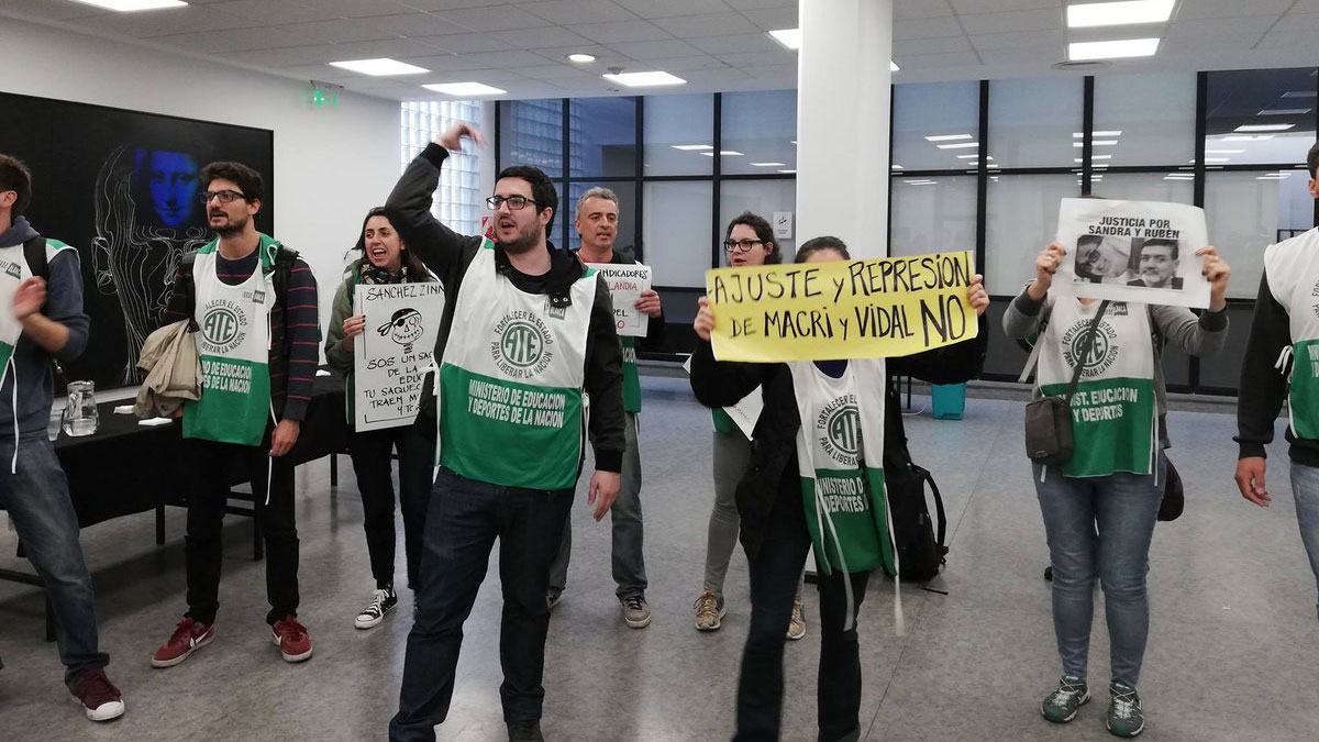 Desde Ate Capital precisaron: “Ante una protesta pacífica de las y los trabajadores, el ministro respondió con una denuncia penal: un funcionario asegura que alguien le arrojó el contenido de un vaso de agua”. “Exigimos el cese de la criminalización de la protesta y denunciamos y repudiamos una vez más la prepotencia y el cinismo de los funcionarios del Gobierno”, apuntaron.