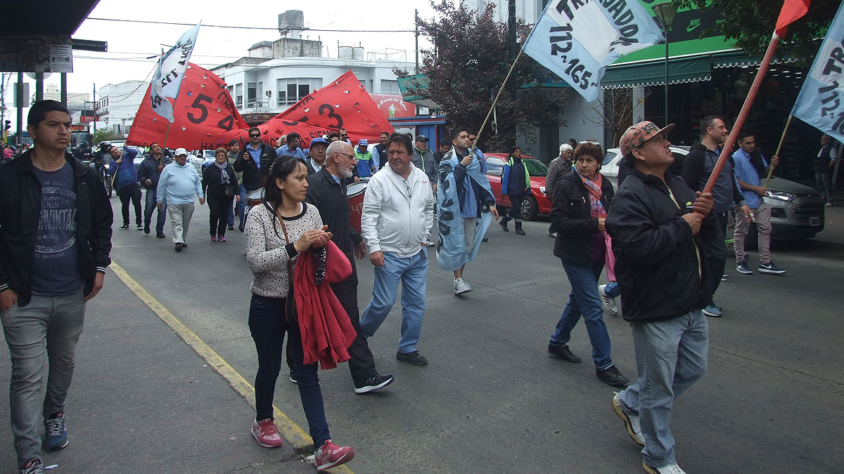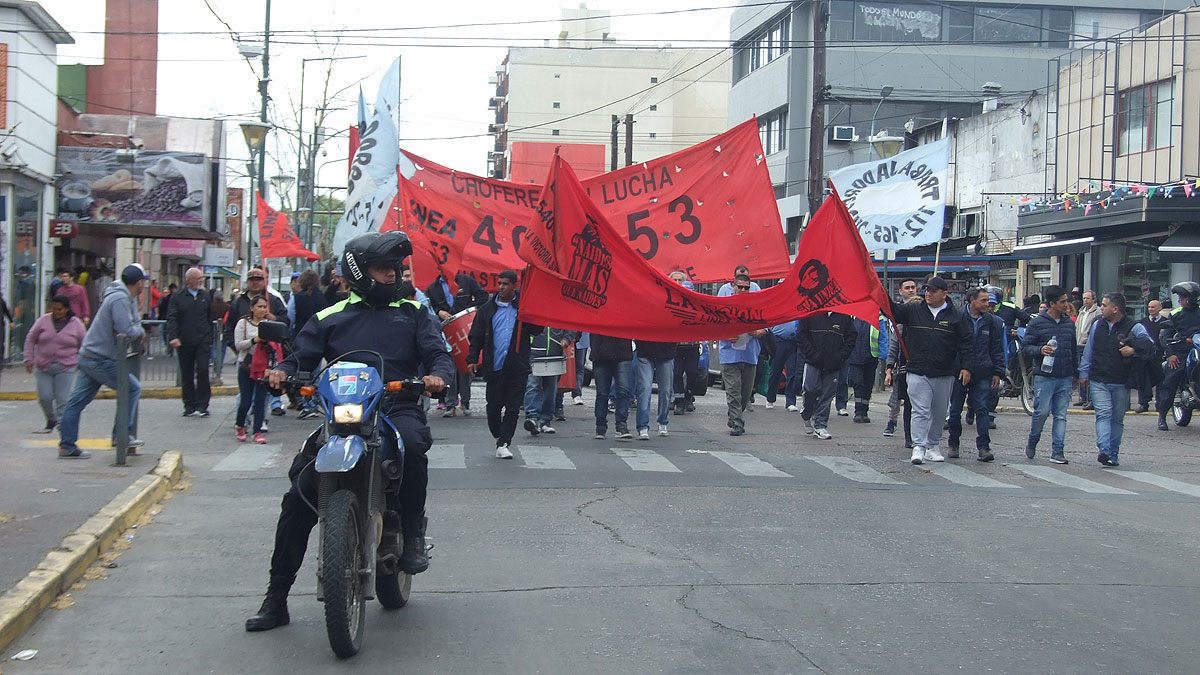 Acompañados de familiares y delegados de otras empresas, los colectiveros recorrieron las calles del centro, desde la estación de trenes donde concentraron con bombos y banderas, hasta las puertas del Palacio comunal. Allí pidieron una reunión con las autoridades municipales.
