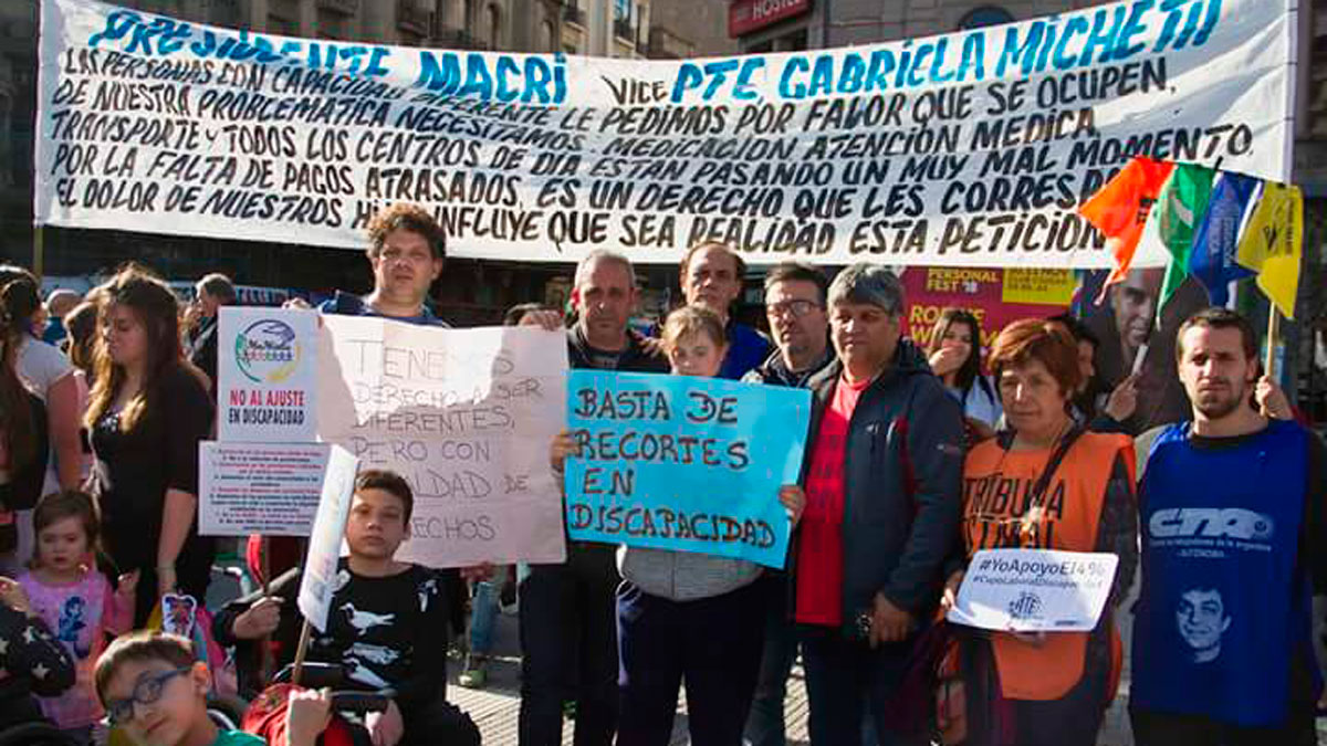 Bajo el lema “No a la quita de derechos para las personas con discapacidad”, diversas organizaciones se concentraron frente al Congreso para denunciar y visibilizar el “ajuste y recorte” que está llevando adelante el Gobierno en discapacidad.