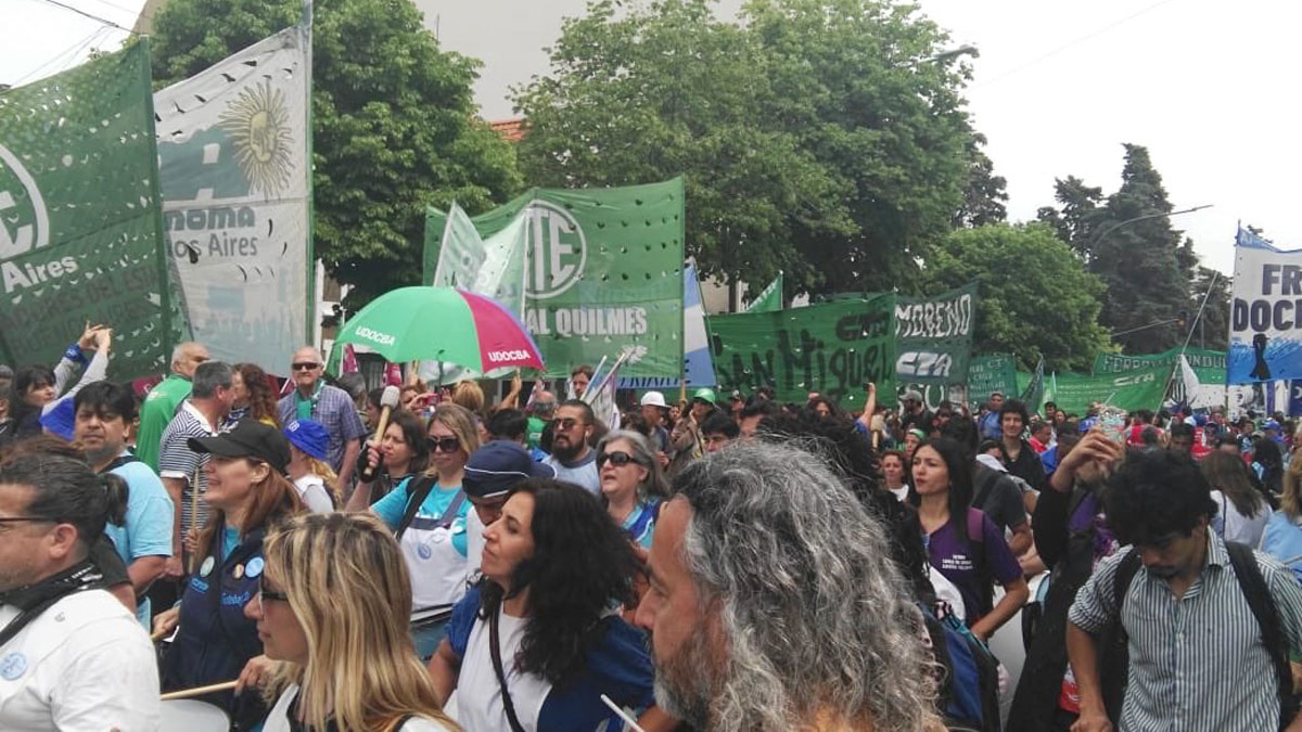 Mirta Petrocini, de la FEB, advirtió: “En el marco del FUDB y los sindicatos judiciales, estatales y médicos, queremos denunciar que la paritaria no es paritaria”. “Nos ofrecen un 11 por ciento a cobrar a noviembre. Nosotros propusimos cobrarlo en octubre y una cláusula de reaseguro pero lo único que hicieron los ministros fue retirarse”, apuntó, en relación al último encuentro.