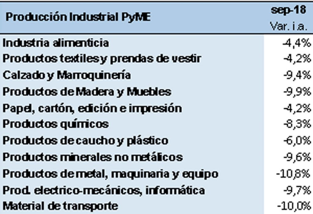 La Confederación Argentina de la Mediana Empresa (CAME) anunció este domingo que la producción de pymes industriales cayó 7,4 por ciento en septiembre en comparación con igual período del año pasado. Es el quinto mes consecutivo en descenso.