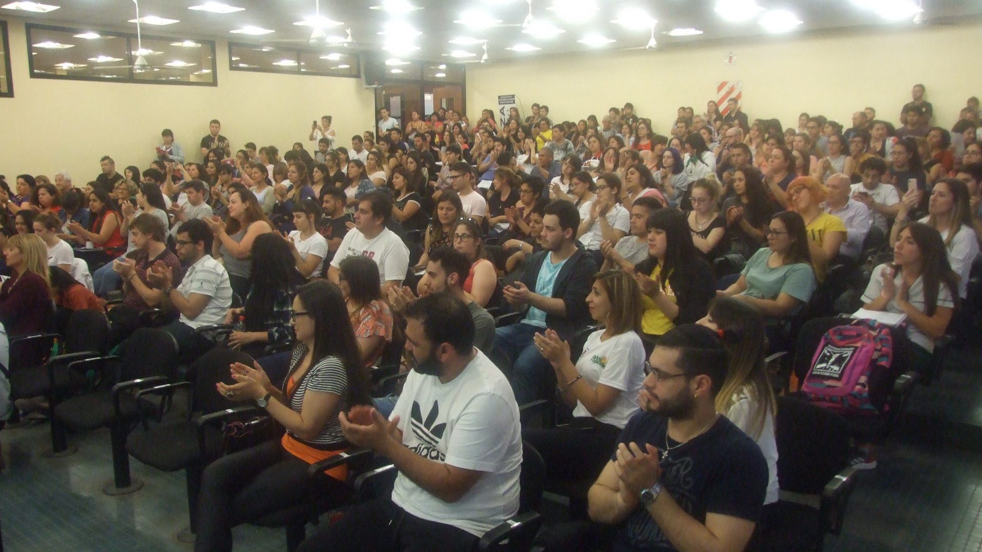 Durante la jornada, que se realizó a sala llena en el Auditorio C, se presentó un documental y contó con la participación del decano Gustavo Naón y el docente y secretario general de Asociación de Docentes e Investigadores de la Universidad Nacional de Lomas de Zamora (Adiulza), Miguel Briscas.