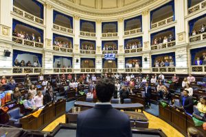 El presidente del bloque Cambiemos, Maximiliano Abad, y la diputada Gabriela Besana, presidieron el cierre del IV Parlamento Federal del Instituto Nacional contra la Discriminación, la Xenofobia y el Racismo (INADI) que se llevó a cabo en el recinto de sesiones de la Cámara baja bonaerense.