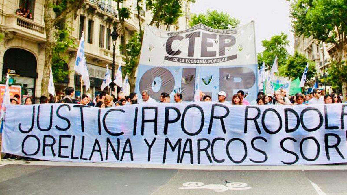 La Confederación de los Trabajadores de la Economía Popular (CTEP) se movilizó este lunes a lasa casa de la provincia de Córdoba y Buenos Aires, en Capital Federal, para reclamar justicia por Rodolfo Orellana y Marcos Soria. Acompañaron organizaciones gremiales.