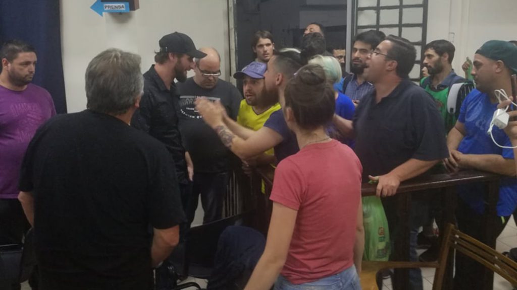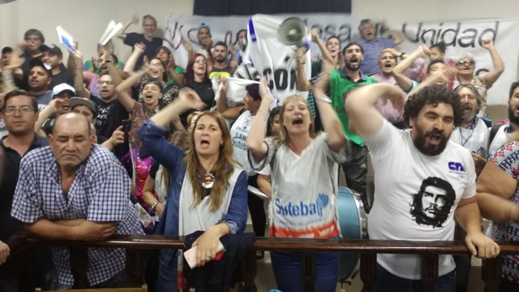 Los militantes de la Mesa de Unidad Sindical de Lanús (Musla), ATE, Suteba, CTA, CTEP y Nuevo Encuentro, entre otros, comenzaron a cantar para rechazar el expediente y el presidente pidió un cuarto intermedio por “tiempo indeterminado” a las 20.45.
