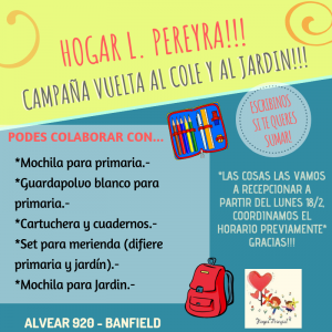 “Vuelta al cole”, es el nombre de la campaña que lanzaron por estos días. El anuncio se hace un tiempo antes de comenzar con la recepción de los elementos, desde el 18 de febrero, para que los interesados puedan entrar en contacto con los responsables del hogar y definir la donación. El objetivo es que no quede ningún pequeño sin sus elementos.