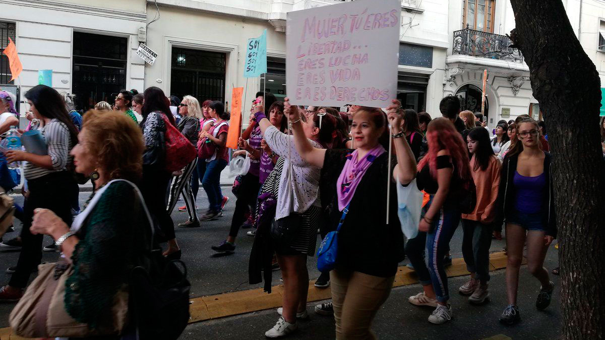 Desde el palco, en la lectura del documento, las organizadoras expresaron: “Paramos porque organizades decimos bien fuerte: Basta de violencia machista en todos los ámbitos, basta de trata, basta de femicidios, travesticidios, transfemicidios y crímenes de odio. Paramos porque el ajuste de Macri y les gobernadores pauperiza nuestras vidas, y el presupuesto del FMI votado por el Congreso dice que nuestras vidas valen menos que un boleto de colectivo”, consideraron.
