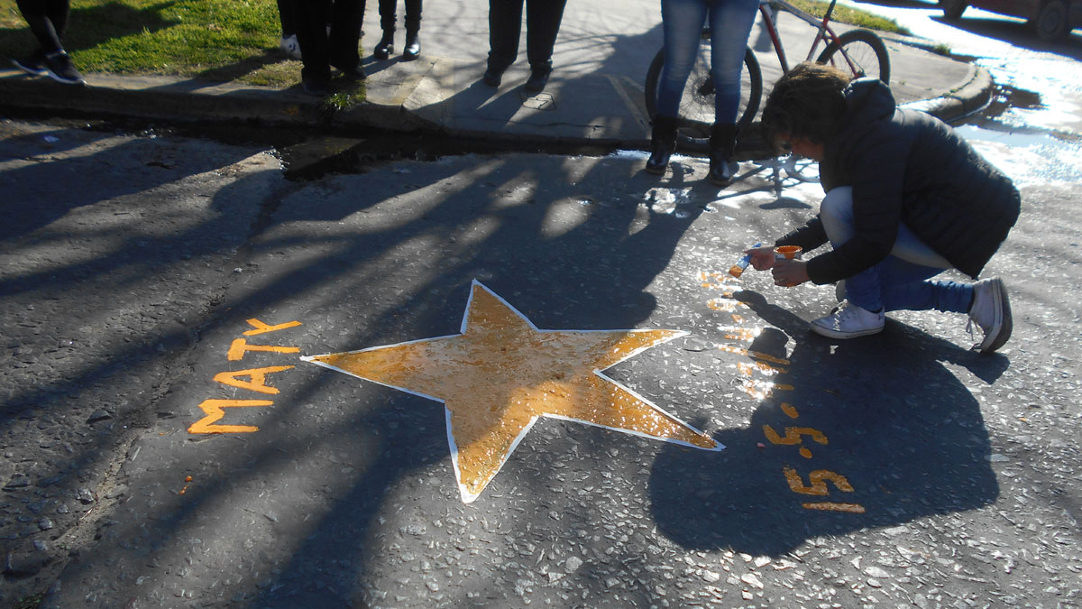 Hace dos años Matías Nicolás Durán, un joven de 20 años, fue atropellado en la esquina de Colombres y Entre Ríos, en Lomas de Zamora y tras estar un día internado en el hospital Gandulfo falleció. Su madre, Lorena Rivero, encabezó este miércoles un homenaje que consistió en pintar una estrella amarilla en el lugar del accidente para “recordarlo y honrarlo”.