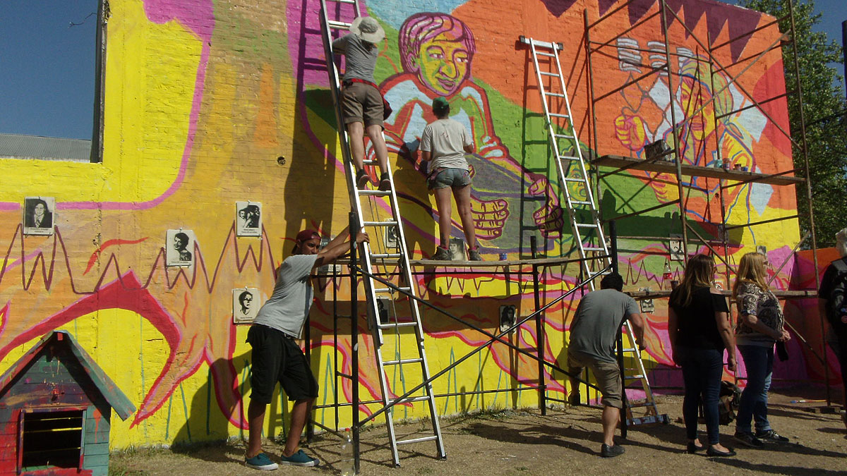 El evento tuvo lugar en la plaza “La Algodonera”, ubicada en la calle J.M. Fernández al 700 de la localidad de Temperley. La agrupación “Muralismo nómade” fue la encargada de llevar a cabo el mural en el que puede observarse un árbol con raíces que alcanzan a las 36 personas representadas en imágenes de cerámica colocadas en la pared.