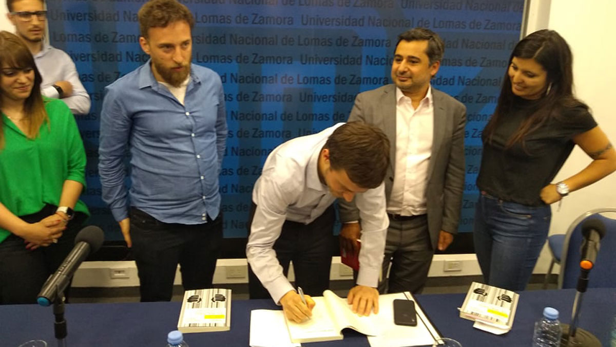 Ante un auditorio colmado, el economista estuvo acompañado en la presentación por el rector de la UNLZ, Diego Molea; la concejal de Lomas de Zamora y diputada nacional electa Daniela Vilar; el diputado provincial Federico Otermín; y la presidenta del Club Atlético Banfield, Lucía Barbuto. Entre el público, en tanto, se encontraba la decana de Derecho, María Fernanda Vázquez; estudiantes y docentes, entre otros.