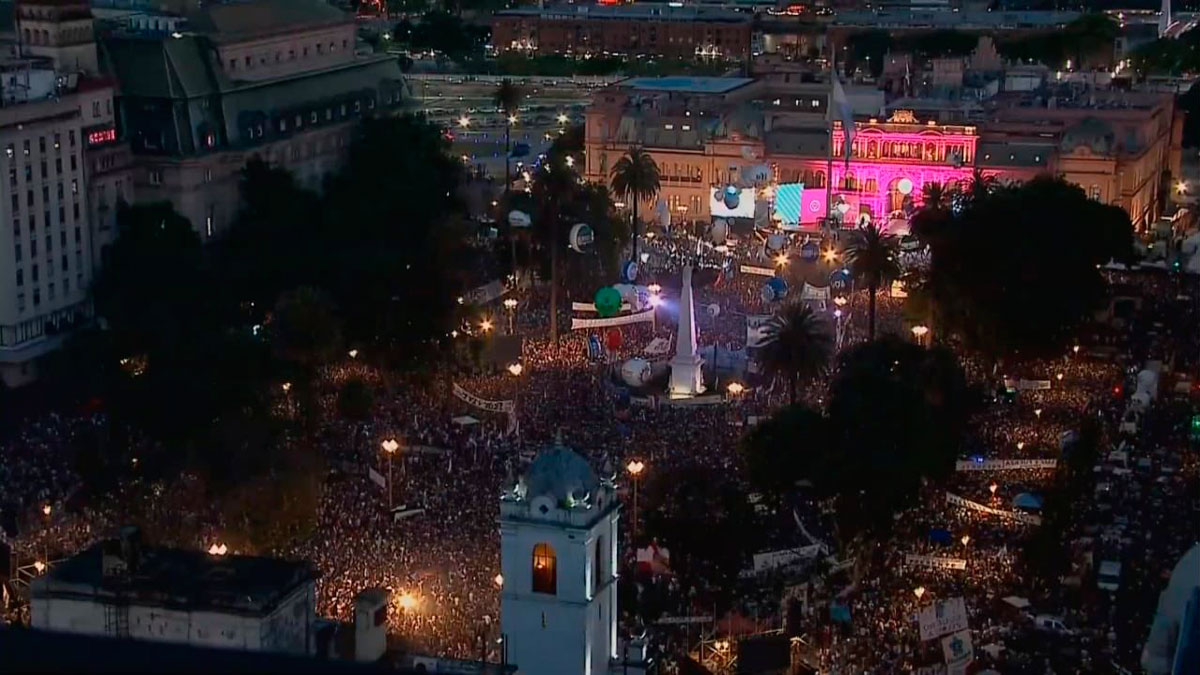 Desde temprano, la histórica Plaza de Mayo estuvo colmada por miles de personas que siguieron el discurso de Fernández ante la Asamblea Legislativa en una pantalla instalada frente a Casa de Gobierno. Durante la tarde, se llevó a cabo un festival de música que contó con la participación de artistas de la talla de Lito Nebia, David Lebon, Iván Noble, Adriana Varela y bandas de estilos diversos como Eruka Sativa, Sudor Marika, Los Pericos y Mala Fama, entre otras. Alrededor de las 20, Alberto y Cristina cerraron los festejos.