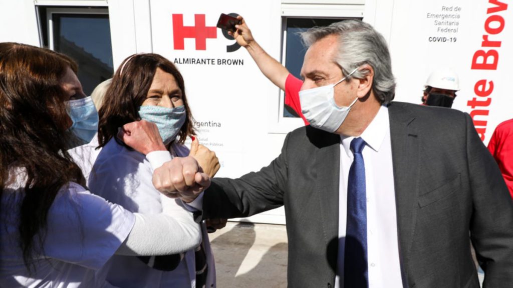 El presidente Alberto Fernández encabezó este jueves la apertura del Hospital Modular de Almirante Brown, el cual fue construido en Longchamps para la internación de pacientes con coronavirus, junto al intendente Mariano Cascallares.