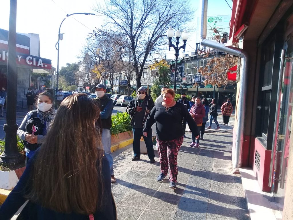 Si bien la mayoría de las personas que aguardaban su turno para ingresar a la sucursal Adrogué del Correo cumplían con la obligación de llevar barbijo, en muchos casos no guardaban la distancia mínima requerida para evitar contagios ni había personal de seguridad para ordenar la fila.