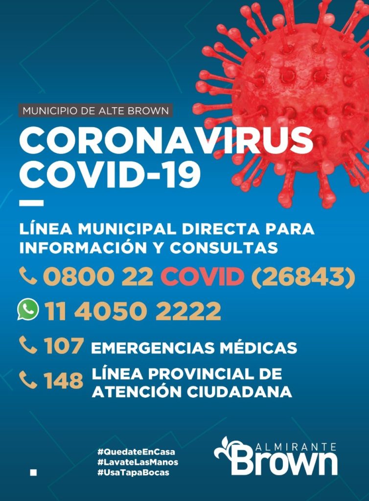 El Municipio de Almirante Brown anunció la puesta en marcha de una línea telefónica municipal especial para información y consultas sobre la pandemia de Coronavirus. El nuevo número ya se encuentra a disposición de las vecinas y los vecinos de todo el distrito.