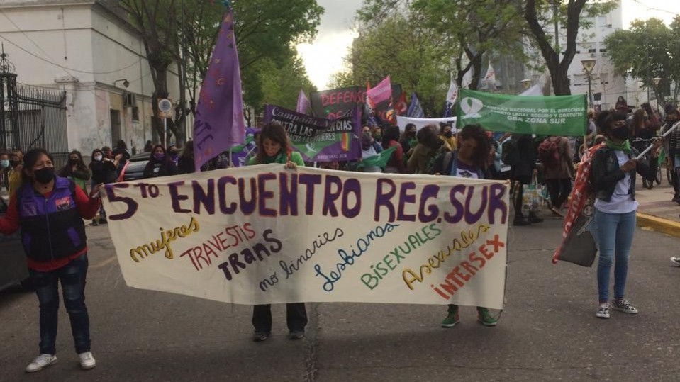 Este domingo Lomas de Zamora fue sede del quinto encuentro regional de mujeres lesbianas, bisexuales, travestis, trans, asexuales, intersex y no binares de zona sur. La jornada incluyó un pañuelazo y una movilización al hospital Gandulfo, entre otras actividades.
