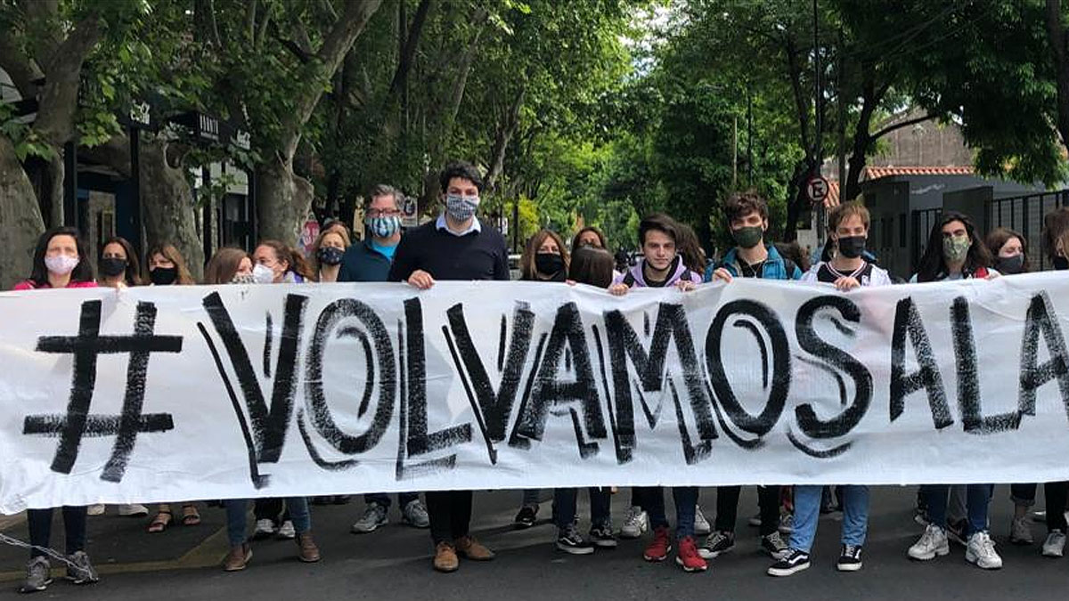 La protesta también se llevó a cabo Victorio Grigera, cuando poco más de una decena de jóvenes se acercó  para exigir la vuelta a las clases presenciales. “Sinceramente sería una alegría por un montón de cosas, no solo el hecho de que volvemos a adquirir y afianzar conocimientos sino también la posibilidad de poder ver de vuelta a nuestros compañeros y amigos”, había señalado uno de los estudiantes del Colegio Manuel Belgrano de Temperley.