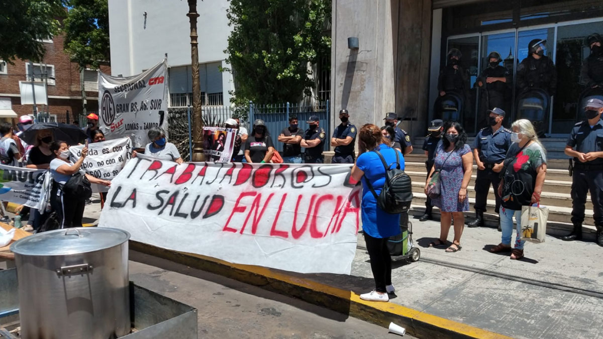 La movilización partió del hospital Gandulfo, luego acudieron a la sede de la Región Sanitaria VI, siguieron por el Consejo Escolar de Lomas de Zamora y finalizaron frente al palacio municipal. El objetivo del recorrido, que generó caos vehicular, fue “reforzar todos los reclamos” que hacen “durante todo el año”.