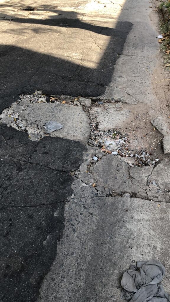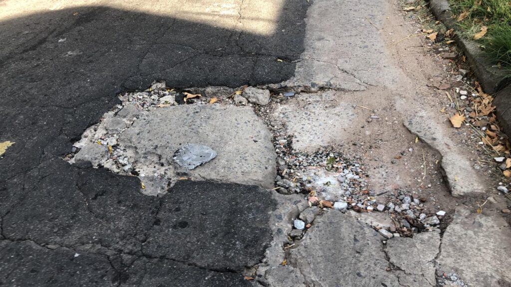“Del Concejo Deliberante sólo se comunicaron para avisar que Obras Públicas iba a venir a reparar Chimento porque insistí que se estaba hundiendo”, subraya Teresa, otra de las vecinas afectadas quien relata que “ahora cuando llueve se junta agua. De hecho, vino Aysa a para conectar agua a una casa particular y debajo del asfalto estaba todo comido, se hizo un pozo en el que casi entraba un hombre de pie y lo rellenaron con piedritas”, detalla
