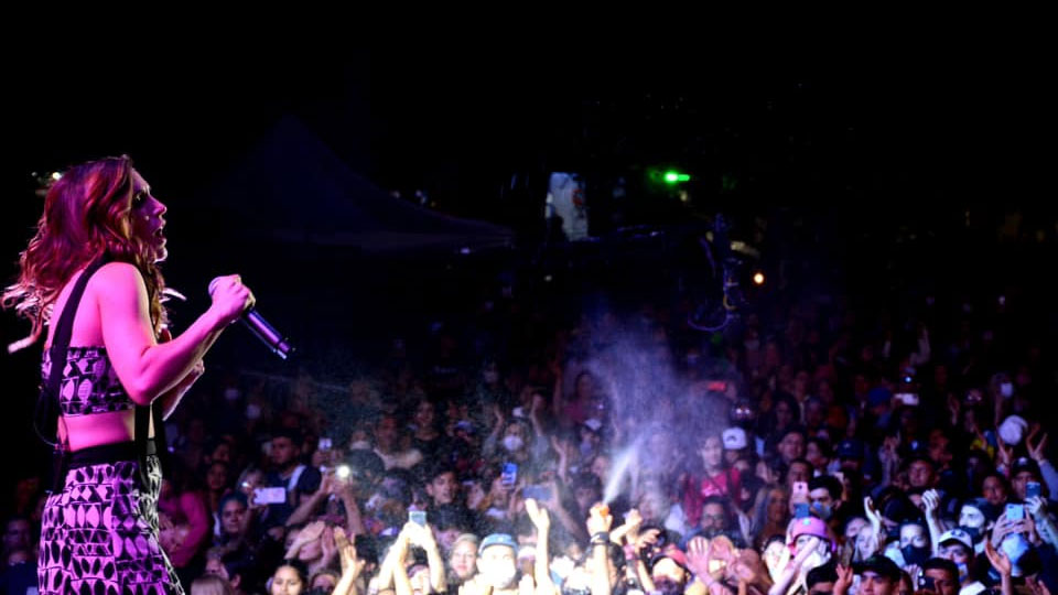 “Llegó la Gringa”, fue su saludo luego del primer tema y como anticipo de lo que vendría: justamente su tema “La Gringa”, que fue la segunda canción de su presentación. Poco después, en alusión a la banda que la precedió, hizo un guiño al público: “Imagino que se bailaron todo con Los Palmeras”, y prometió que ella también los haría bailar. Así fue.
