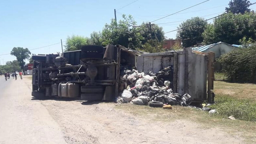 Un camión del servicio de recolección de residuos de San Vicente protagonizó este domingo al mediodía un espectacular accidente de tránsito que terminó con el chofer, dos acompañantes y otros automovilistas heridos, uno de ellos de gravedad por un fuerte impacto en la cabeza, además de varios vehículos destruidos.