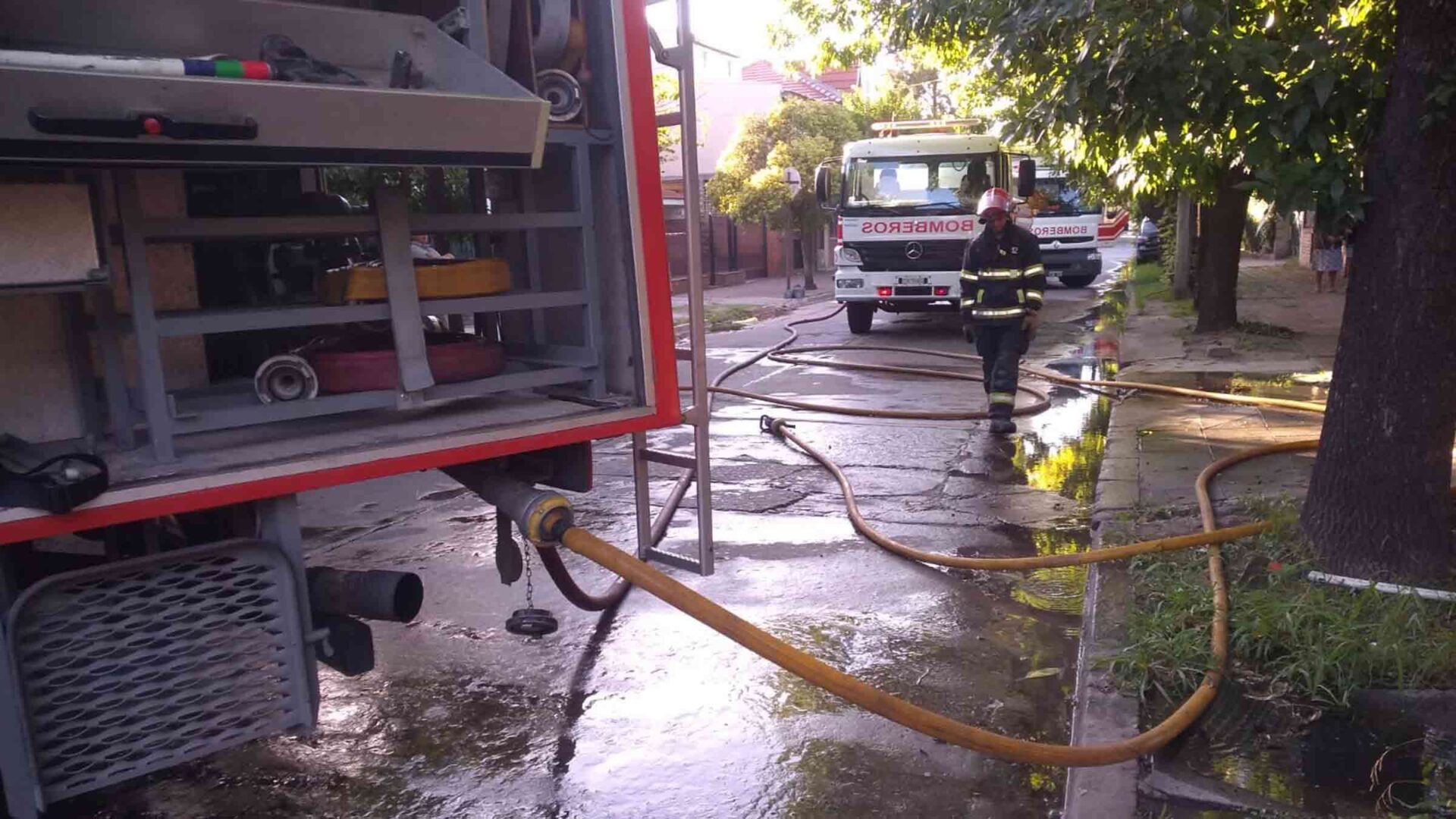 Tres dotaciones de bomberos acudieron al llamado y trabajaban para sofocar las llamas. Además de la vivienda, un vehículo estacionado en el predio fue afectado y los daños son totales.