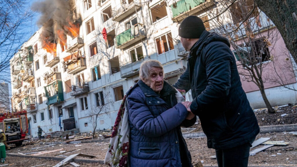 En las primeras horas del ataque del Ejército ruso a diferentes regiones ucranianas, en su mayoría infraestructuras militares, aeropuertos y aeródromos, los bombardeos y disparos de artillería dejaron imágenes de desolación y cadáveres calcinados en las calles del este de Ucrania.
