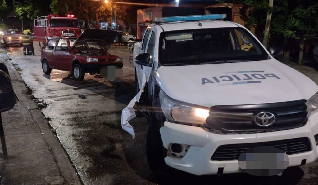 Tres personas resultaron heridas en un siniestro vial que se registró ayer en Rafael Calzada. Un patrullero chocó con un auto en el cruce de dos avenidas.