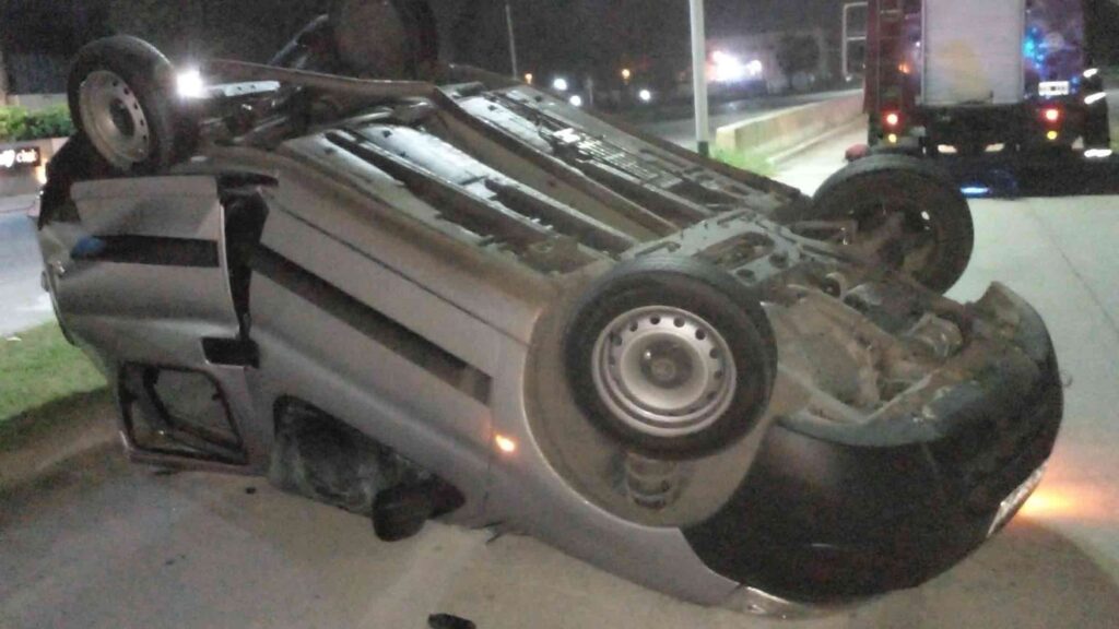 De acuerdo a las imágenes compartidas por los Bomberos Voluntarios de Esteban Echeverría, fueron cuatro los vehículos involucrados en el siniestro, que incluyó el vuelco de uno de ellos.