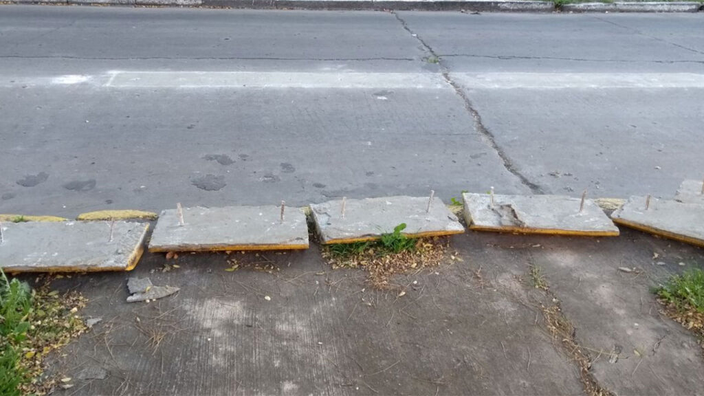 Los bloques y las señalizaciones removidas se vieron fundamentalmente sobre la calle Soler en un tramo de unos setecientos metros desde Pichincha hasta San Basilio, donde los pedazos de material empleados para la demarcación de las sendas, que estaban amurados a la cinta asfáltica, aparecieron prolijamente depositados sobre las veredas.