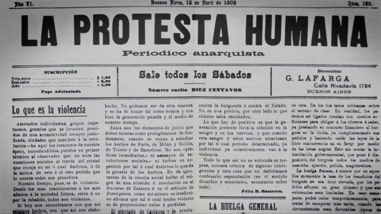 Se nos contextualiza en un tiempo pasado en Argentina a través de material de archivo, sobre todo fotografías, que retratan una época en la que la clase obrera jugaba un papel muy importante dentro de la esfera política. Comenzaban a sentirse aires combativos. En ese marco, las ideas traídas por inmigrantes lograban hacer eco y empezar a ganarse un lugar donde se jugaba la posibilidad de ver el mundo de otra manera, y poco a poco entender que existen otras posibilidades y otras realidades, además de la voz de la hegemonía totalmente consolidada por la clase alta.