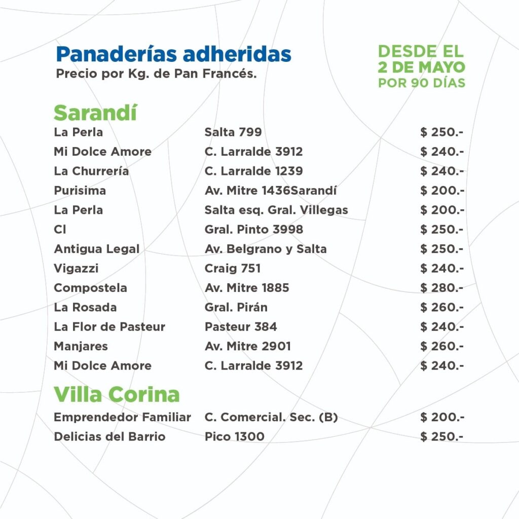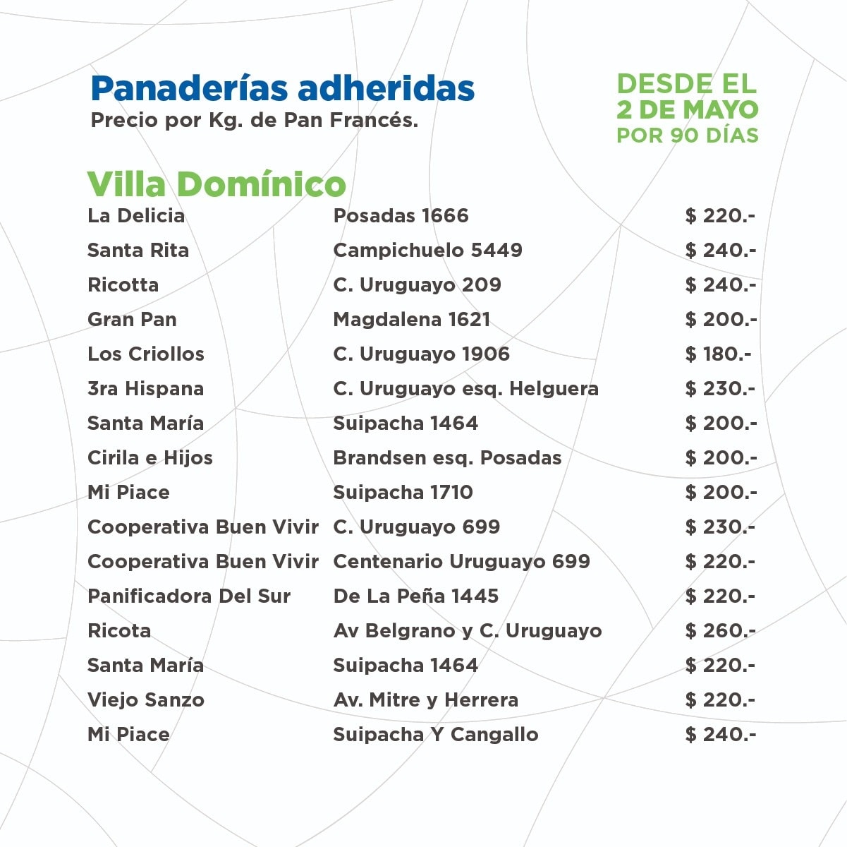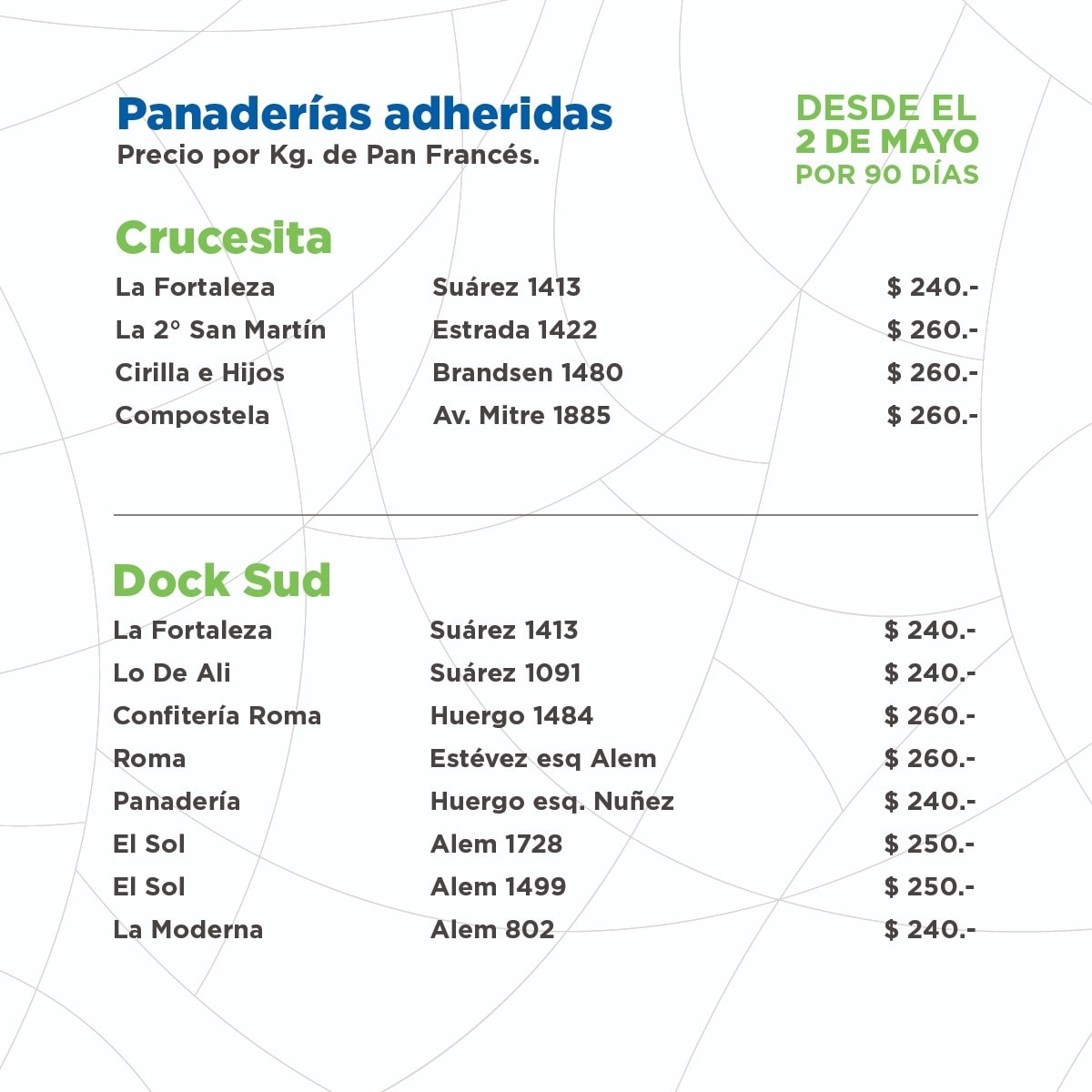 El convenio rige desde ayer y por 90 días. Establece un precio de referencia para el pan francés en distintas panaderías locales. ¿Cuáles son las adheridas y a qué precio venden el kilo de pan francés?