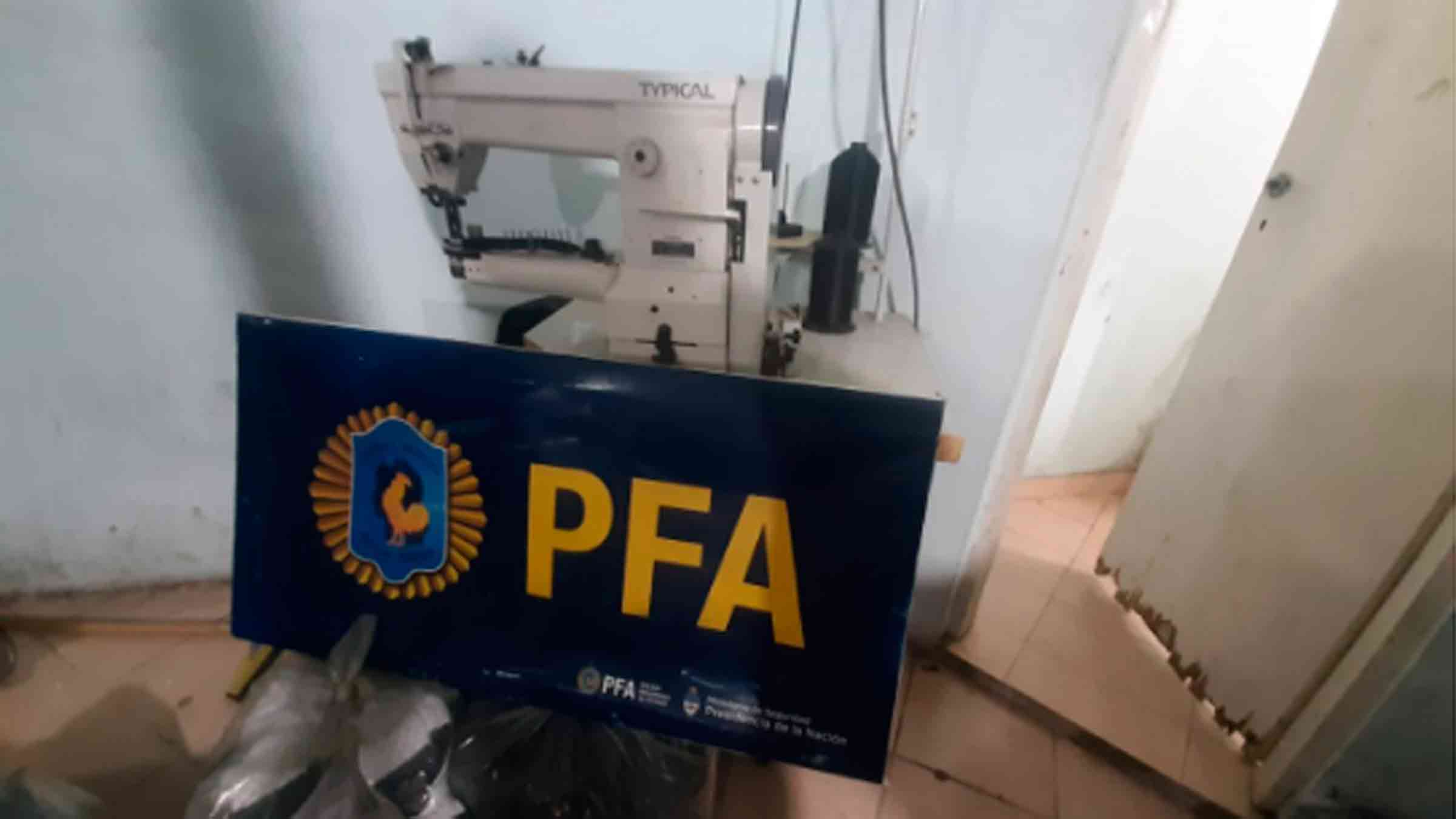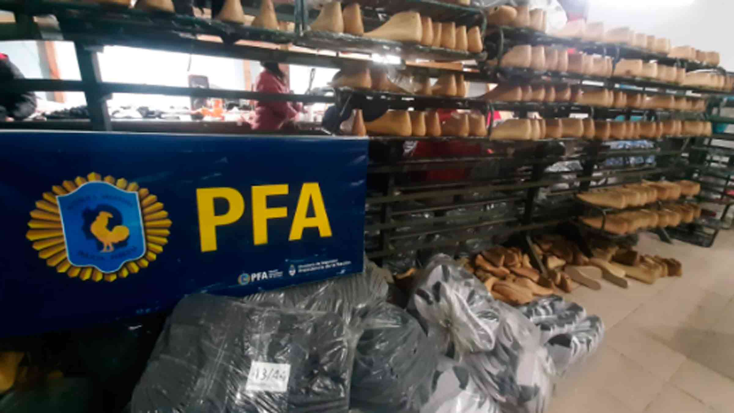 Las investigaciones se iniciaron por orden del Juzgado Federal en lo Criminal y Correccional Nº 2 de Lomas de Zamora. Los efectivos determinaron que el taller funcionaba en un domicilio de San Juan al 1000, 9 de Abril, del partido de Esteban Echeverría. Se confeccionaba calzado deportivo.