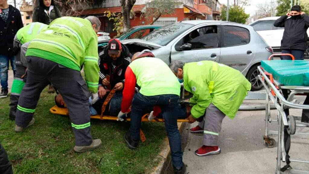 “Los cuatro presentaron lesiones leves en piernas, rodillas y cabeza. Fueron trasladados por el SAME hacia el Hospital Vecinal”, informó Defensa Civil de Lanús.