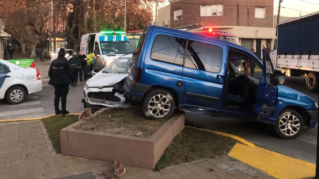 La camioneta, que recibió un golpe en la parte central y posterior izquierda, terminó sobre un cantero de cemento.