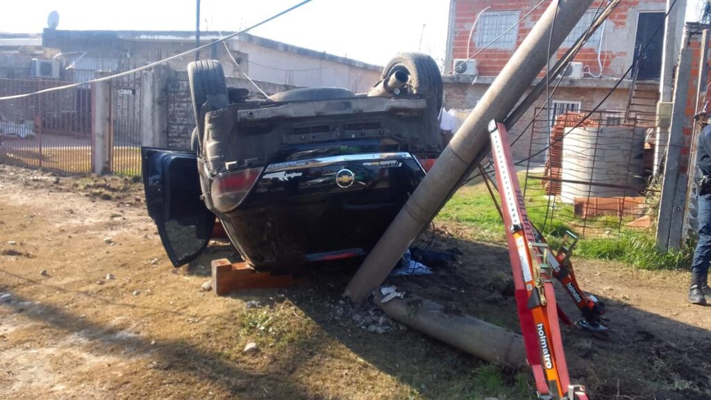 Las imágenes dan cuenta de la gravedad del accidente. El vehículo quedó dado vuelta, pero antes embistió un poste de luz y la reja del frente de una casa.