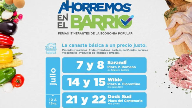 La feria se podrá aprovechar de 10 a 13, y los días 7 y 8 de julio estará presente en la Plaza Pascual Romano, ubicada en la avenida Manuel Belgrano y Suipacha, de Sarandí. Los días 14 y 15 en la plaza A. Florentino, en Cruz Varela 6200, de Wilde. Mientras que el 21 y 22 de julio se llevará a cabo en la Plaza del Centenario, en Alem y Virrey Vertiz, de Dock Sud.