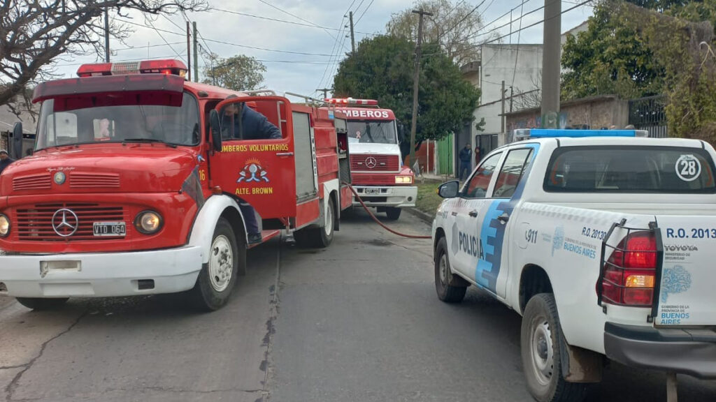 Dos dotaciones de los Bomberos Voluntarios de Almirante Brown (BVAB) trabajaron ayer para sofocar las llamas que se desarrollaron en una casa ubicada en la calle Santa Ana 1200, a metros de la avenida Amenedo. Un hombre sufrió quemaduras y debió ser asistido luego de intentar apagar el fuego para que se siga expandiendo.