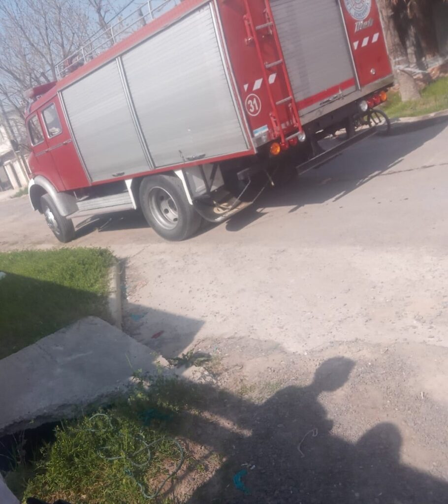 Una dotación de bomberos, a cargo del Oficial Ayudante Oscar Nieva, acudió al lugar para rescatar al animal y regresarlo sano y salvo con su familia.