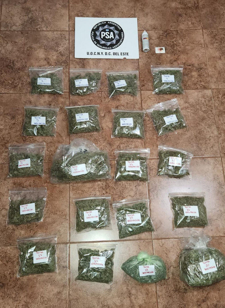 Durante los allanamientos encontraron el celular, la billetera y cuatro tarjetas bancarias a nombre del pasajero. Además, en una de las viviendas secuestraron casi 2 kilos de marihuana utilizada para fines comerciales, dos balanzas de precisión y plantines de cannabis.