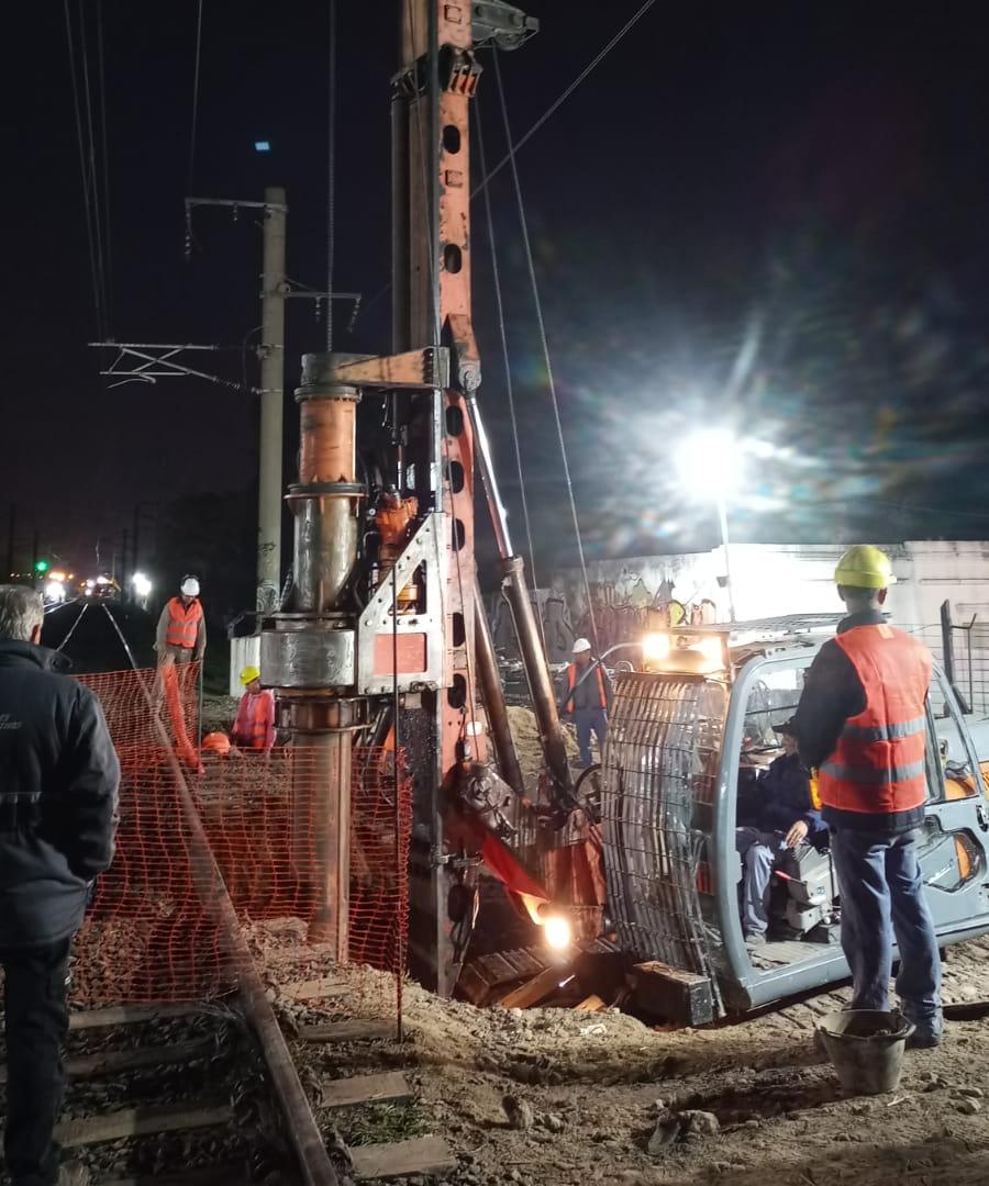 Durante este domingo, en la zona de vías, los equipos trabajaron en la colocación de pilotes que conformarán parte de la estructura de los puentes ferroviarios. Debido a esto, el servicio del tren Roca, ramal Ezeiza, sufrió reducción en su servicio por lo que solo circulaba desde Plaza Constitución hasta Monte Grande.