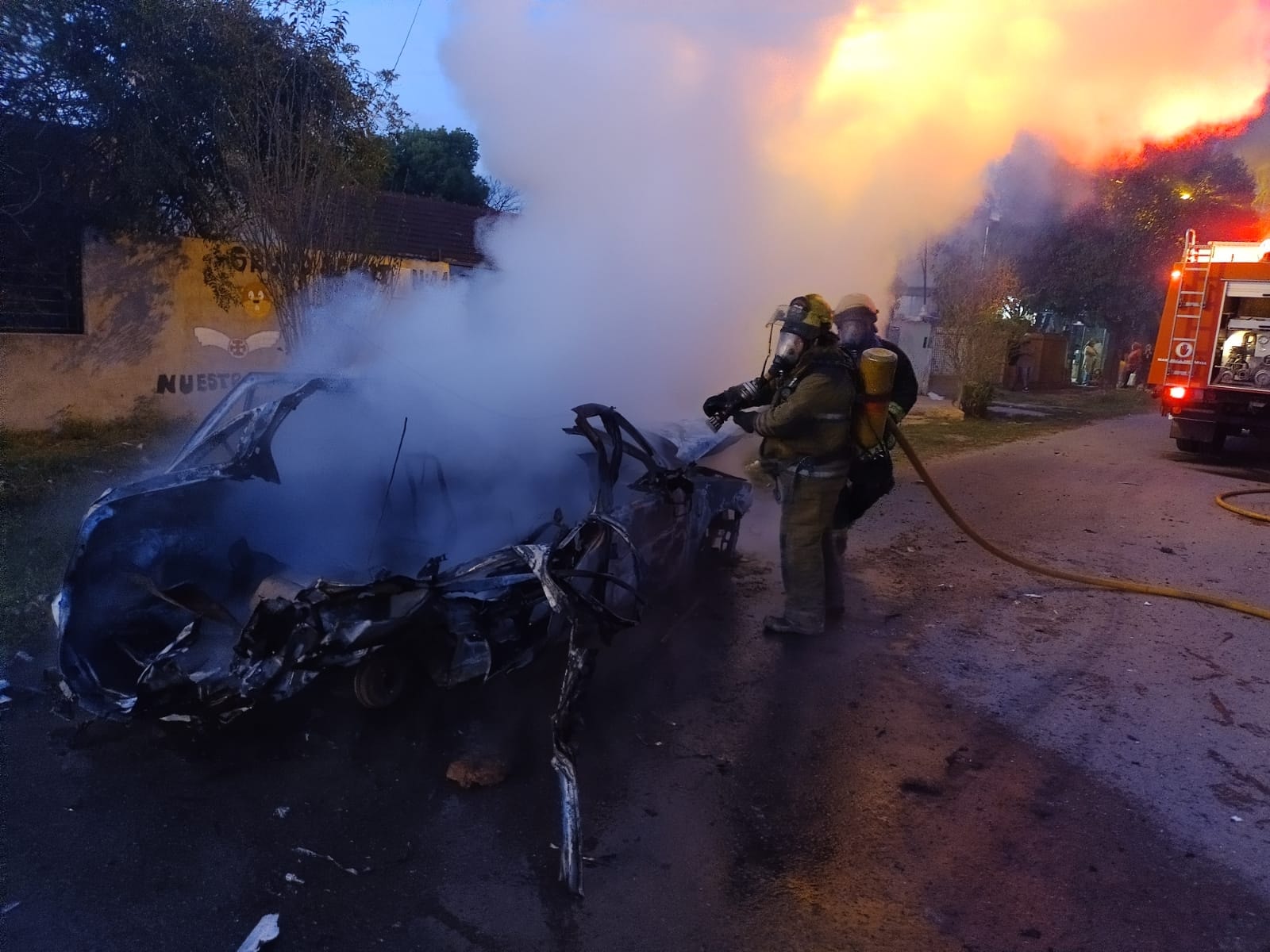 Los Bomberos Voluntarios de Esteban Echeverría trabajaron este domingo en el incendio de un vehículo que se encontraba en la calle, en Monte Grande. El siniestro no causó víctimas fatales ni heridos.